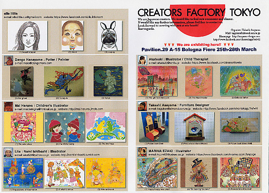 下記の報告会は終了しました。最後のコメントにてフェースブックでの誌上報告会開催のお知らせがあります。 皆さんは日本を巡回するボローニャ国際絵本原画展をご存知ですよね。現地イタリアのボローニャでは毎年3月末に絵本見本市と同時開催で行われます。今年は設立50周年に当たります。 実は今回、絵本作家が誰しもが憧れるこの絵本見本市に、クリエーターとしては日本ではじめてブースをレンタル(約50万円)し、男性2名、女性13名のクリエーターを募って「作品を見せるのではなく、売り込むため」に行ってきました。 会期3/25-28 2