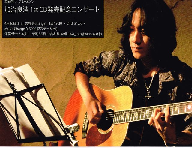 加治良浩の記念すべき1st CDが、遂に発売決定! 記念ライブも決定しました! 詳細は随時アゲます! ■4月26日(金) 立花裕人プレゼンツ「加治良浩CD発売記念トーク&ライブ」 吉祥寺Strings 1st 19:30〜(ソロ演奏) 2nd 21:00〜 (刈川×加治のduoになります) MC ¥3000 (両ステージ通し) http://www.jazz-strings.com/