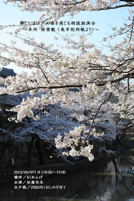 管理人さま失礼します 着物スタイリストの鳴海彩詠と申します。 -- 片町にさらさ染(そ)むるや春の風 このたび西早稲田の趣のある古民家で 着物をはじめたい、着物から広がる日本ノコトを 知って頂けるイベント開催します! うららかな春の週末に着物で遊びにいらっしゃいませんか。 -- 『日本ノコトハジメ 〜花残月』 ◆日時:2013 04/05(金)12:00〜19:00 04/06(土)11:00〜19:00 04/07(日)11:00〜17:00 ◆会場 : もくれんげ(東京メトロ副都心線「西早稲田駅」2番出口 徒歩3分) 連日、