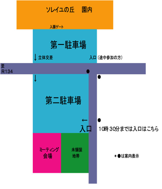2013年は4月7日(日)に開催決定! 会場 横須賀 長井海の手『ソレイユの丘』第2駐車場 http://soleiljapan.jimdo.com 10:30〜15:00予定 *ゲートオープンは9:45 10:30まではイベント専用入口から入場。 途中参加については、通常の駐車場入口(第一駐車場)から入っていただき、立体交差から第二駐車場→会場にお越しください。 参加費(駐車料金含む) 2輪 1,000円 4輪 1,600円 *途中参加の方につきましては、通常駐車場入口にて駐車料金(2輪400円・ 4輪1,0