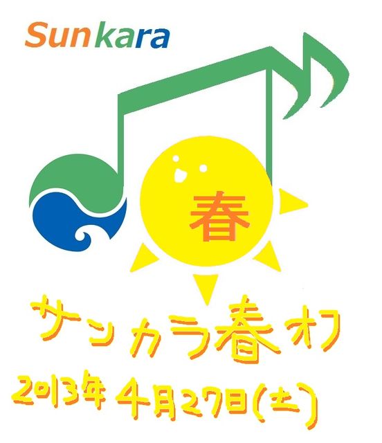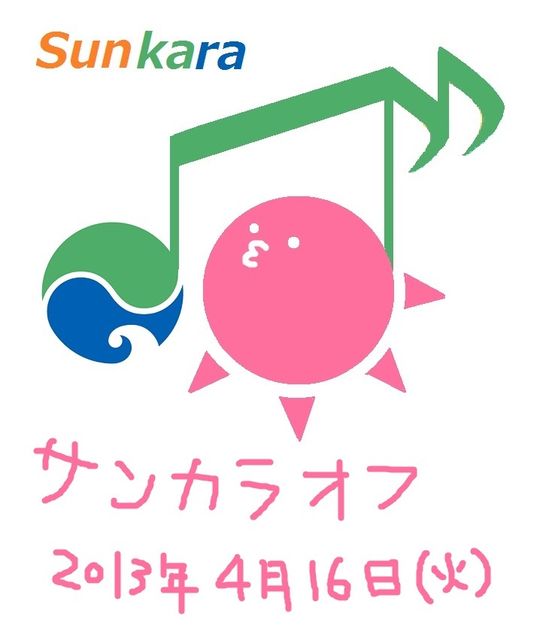 第13回 浜松カラオケオフ会 通称サンカラオフ 昨年度はたくさんの方に参加していただきました、 メガトンオフですが、 本年度はサンカラオフという名前にリニューアルし、 新たなスタートを切ることになりました どうぞよろしくお願いします 三ヶ日町のカラオケバカこと、幹事の太陽です 今月もオフ立てさせていただきました 幹事 太陽 副幹事 riccaでお送りします 毎月参加してくれている方はもちろん、 初参加の方