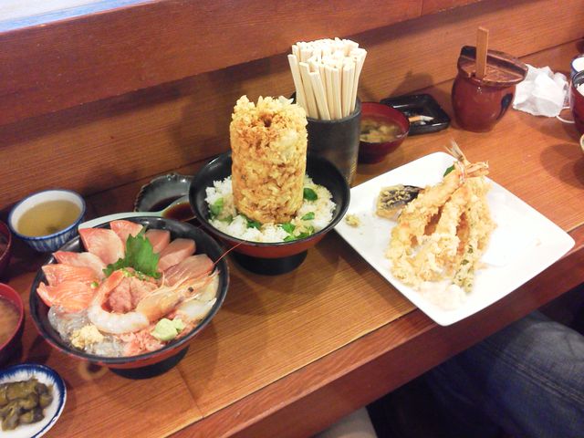 以前から話題になっていた?あのかき揚げ丼を食べに行こー 静岡県富士市高島町69 TEL:0545-51-8540 営業時間:AM11:00〜PM9:30 http://www.uogashi-maruten.co.jp/menu/index.php 集合東名高速 海老名SA(サービスエリア)下 09:00集合 ↓ 09:30出発 ↓ 足柄SA 10;30 ↓ 沼津IC 11:00到着予定 ↓ 沼津港 11:30到着予定 メニューは海鮮メインで色々有るからかき揚げにとらわれずお好きなものを こんな感じでいかがですか? コメントで書いてますがすぐ近くに 深海魚