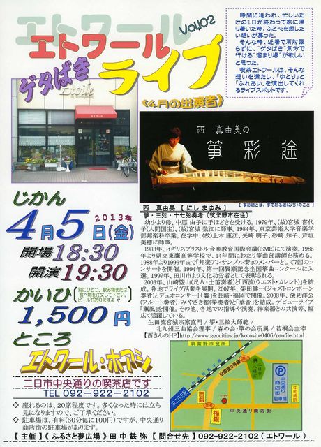 ¡Ô Æü¡¡»þ ¡Õ ¡¡£´·î£µÆü(¶â) ³«¾ì¡¨PM£¶:£³£° / ³«±é¡¨PM£·:£³£° ¡Ô ½Ð¡¡±é ¡Õ ¡¡À¾¡¡¿¿Í³Èþ¤Îä·ºÌÅÓ ¡¡¡Ì ä· ±é ÁÕ ¡Í ¡¡¡¡À¾¡¡¿¿Í³Èþ¡¡( ¤Ë¤· ¤Þ¤æ¤ß ) ¡¡¡Ú ä·ºÌÅӤȤϡ¢ä·¤ÇºÌ¤ëÅÓ(¤ß¤Á)¤Î¤³¤È ¡Û ¡Ô ²ñ¡¡Èñ ¡Õ ¡¡£±,£µ£°£°±ß ¡¡¡¡(Ê̤ˤҤȤġ¢°û¤ßʪ¤«¿©¤Ùʪ¤ò ¡¡¡¡¡¡¡¡¡¡Ãíʸ¤·¤Æ²¼¤µ¤¤¡£¥Ó-¥ë¤â¤¢¤ê¤Þ¤¹¤è!!) ¡Ô ²ñ¡¡¾ì ¡Õ ¡¡ÆóÆü»ÔÃæ±ûÄ̤꾦ʳ¹¤ÎµÊÃãŹ ¡¡¡¡¡Ö¥¨¥È¥ï¡¼¥ë¡¦¥Û¥¢¥·¡× ÅÅÏÃ,£°£¹£²-£¹£²£²-£²£±£°£² ¡¡¤ª²Ë¤ÊÊý¤Ï»þ´Ö¤Ä¤Ö¤·¤Ë¡¢¤ªË»¤·¤¤Êý¤Ï©ȴ¤¤Ë¤¼¤Ò¤ª±Û¤·²¼¤µ¤¤¡£ ¤Ê¤ª¡¢¤ª¼ò¤ò³Ú¤·¤Þ¤ì¤ëÊý¤Ï¡¢¸ø¶¦¸òÄÌ