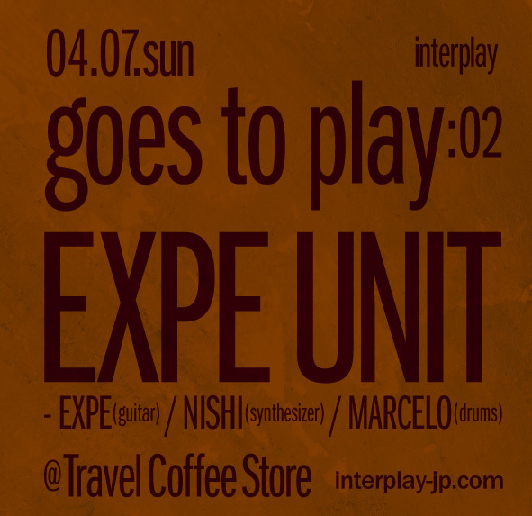 2013.04.07.sun @東浪見 Travel Coffee Store http://ameblo.jp/hiwafun/entry-11092221984.html 千葉県長生郡一宮町東浪見167-2 live. EXPE UNIT - EXPE(guitar) / NISHI(synthesizer) / MARCELO(drums) & more… candle. Jabalani Candle lighting. liquidbloom livestart. 17:00- Donation!!! – 投げ銭 - YOSHITAKE EXPE – Space Guitar - WWW.NUEXPE.COM ---------- ジャパニーズビザールギター『テスコSpectrum5』をメインギターに、多様なエフェクターと手作りの真空管アンプを組
