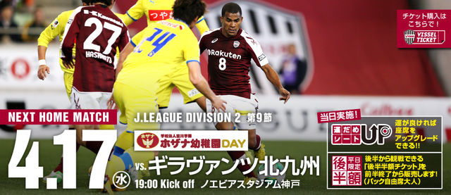 13年 Jリーグ ディビジョン2 第9節 ヴィッセル神戸 対 ギラヴァンツ北九州 ○会場/アクセス ノエビアスタジアム神戸 〒652-0855 神戸市兵庫区御崎町1丁目2番2号 御崎公園内 電車 神戸市営地下鉄海岸線「御崎公園駅」から徒歩約5分 JR神戸線「兵庫駅」から徒歩約20分 車 阪神高速神戸線「湊川」から約5分 ※土・日・祝は大変混雑するので、できるだけ公共交通機関利用を。 ノエスタへの行き方(飛行機編) http://www.youtube.com/watch?v=QO-toN-ldO0&feature=related