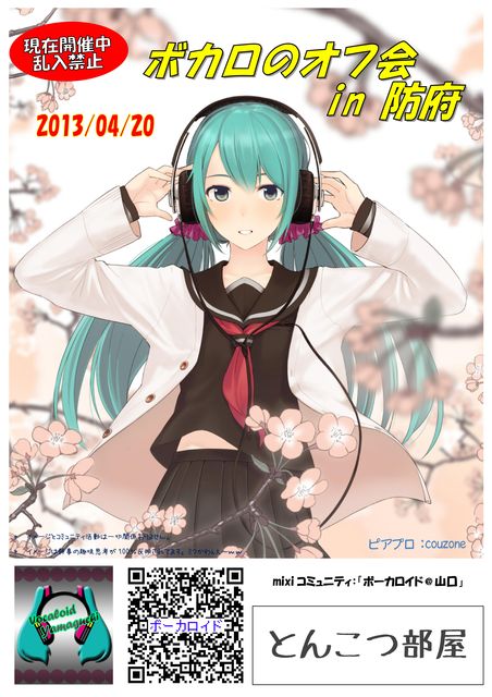 お久しぶりです!管理人のtt6(ととろ)です!! ボカラボお疲れ様でした!! 私生活がばたばたして更新がおろそかになっていますね汗 4月から広島に転勤や、春から新しい学校など、、新生活という方も多いと思います! これからも時間がある限りオフ会をまったりしていこうと思っていますので よろしくお願いします。 【開催日程】 2013年4月20日(sat) 【場所】 ビリー・ザ・キッド流川店 広島市中区流川町5−17 http://local.google.co.jp/maps?f=q&hl=ja&q=%E5%BA%83%E5%B3%B6%E5%B8%82%E4%B8%AD%E5%8C%BA%E6%B5%81%E5%