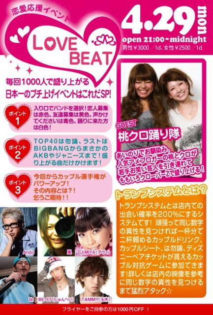 ラブビートに桃クロ登場! ゲスト合い言葉でディスカウント 【ラブビートのゲストで東京県民】でディスカウント! めちゃ盛り上がる! 都内最大規模というか今日の最大イベント