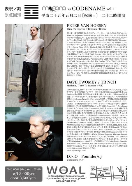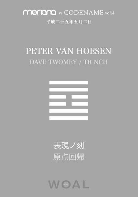 今回のMariana vs Codenameのプロジェクトは現在エレクトロニックミュージックシーン中心都市であるドイツベルリンの最高峰クラブ Berghain / Panorama Bar をはじめ、ロンドンは Fabric、ニューヨークの The Bunker などでも注目を集め、世界的フェスの新たな方向性を作る日本の人気前衛的フェス、ラビリンスから絶大な人気と知名度を誇るTime To Express主宰PETER VAN HOESENを再びフューチャーいたします。