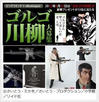 ゴルゴさん 撃ってほしいは 妻、上司――。そんな「ゴルゴ川柳」をeBookJapanとビッグコミック編集部が募集している。 [mixi] “ゴルゴ13の日”にゴルゴ川柳「ゴルゴさん 撃ってほしいは 妻、上司」。(ナリナリドットコム) http://news.mixi.jp/view_news.pl?id=2404365&media_id=84&from=news_search