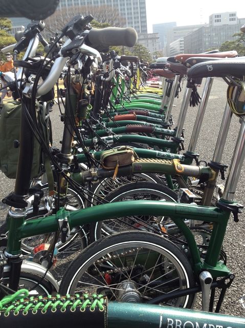 ポタリングに良い季節になりました! 第八回目のお知らせです。 Bromptonオーナーの皆様。 パレスサイクリングにBromptonで集まりませんか? ★日時 2013年5月12日(日) 10時〜 ★場所 皇居内堀通り。二重橋前信号近く、皇居に向かって右側の歩道 ★参加資格 Bromptonオーナー Brompton持ってないけどLoveな方 Brompton持ってないけど、友達、彼女、彼氏がBrompton Loveで、 どうしてなのかその理由を知りたい方。 ★会の目的