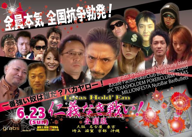 JPKメガディープ × 仁義なき戦い全国大会 × JAPAN DREAM CUP サテライト 開催日時 : 5月19日(日)13:00ゲームスタート 開催場所 : Poker Bar TEXAS HOLD'EM 参加費用 : 9,000円 バケーション:開始より2時間まで トーナメントルール ■JPK MDST NL Texas Hold'em ■スタートチップ30,000点/全Round 20分 ■ノーリバイ&ノーアドオン (事前エントリー20名で完全ノーリバイ&ノーアドオン。 ただし参加人数が20人に満たない場合、合計人数20人までリエントリー可能とす