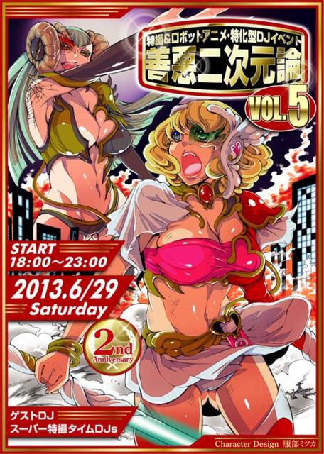 【特撮】【ロボットアニメ】特化型DJイベント、【善悪二次元論】 お陰様で二周年を迎える事が出来ました!! ありがとうございます!! 姉妹イベント善悪+が続きましたが、再び本来の善悪二次元論の姿【特撮】【ロボットアニメ】で、熱いDJ&VJ陣が皆様の耳と目と心を揺さぶります! 今回二周年のお祝いに、特撮と言えばこのイベント“スーパー特撮タイム”の精鋭DJ陣が全員ゲストDJとして登場!! 特撮特盛りかと思いきや、善悪DJ陣がロボアニで迎え撃ちます♪ 激熱ゲストDJ&VJ陣、そしてレギュラーDJ陣と一緒に善悪二歳のお