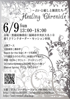¡ÖHealing Chronicle¡ÁÀꤤ¤ÈÌþ¤·¤È»¨²ß¤¿¤Á¡Á¡× 2013ǯ6·î9Æü¡ÊÆü¡Ë13:00-18:00 ¾ì½ê¡§¹õDz°àÝàêŹ(Ê¡²¬»ÔÃæ±û¶èÂç̾1-5) ¢¨Æþ¾ì»þ1¥É¥ê¥ó¥¯¥ª¡¼¥À¡¼¡¡¥»¥Ã¥·¥ç¥óÎÁÊÌ http://healyourself.jugem.jp/ ·Ù¸Ç¸òº¹ÅÀ¶á¤¯¤Ë°ÌÃÖ¤¹¤ë¥ì¥È¥í¤Ê¥«¥Õ¥§ àÝàê¤Ç¤â°û¤ß¤Ê¤¬¤é¡¢Ìþ¤·¤Î¤Ò¤È¤È¤¤ò¤É¤¦¤¾¡¦¡¦¡¦ ½ÐŸ¥Ö¡¼¥¹ ¡¦»ç±ñ-sion-(¥Á¥ã¥Í¥ê¥ó¥°¥¿¥í¥Ã¥È) ¡¦Eternal Spirits¡Ê¥¿¥í¥Ã¥ÈÀꤤ¡¦¥¿¥Þ¥é¥Ò¡¼¥ê¥ó¥°¡Ë ¡¦Reach for the Star¡Ê¥ª¡¼¥é¼Ì¿¿Åù¡Ë ¡¦Å·ÝæÏ³Ýõ¡Ø¤Æ¤ó¤¤í¤¦¤¸¡Ù¡Ê±¿Ì¿³Ø¡Ë ¡¦¤¢¤¹¤ï¥Þ¥ä´ÕÄê¡ÊR¡Ë¡Ê¥Þ¥ä´ÕÄê¡Ë ¡¦