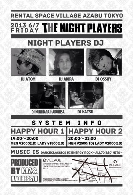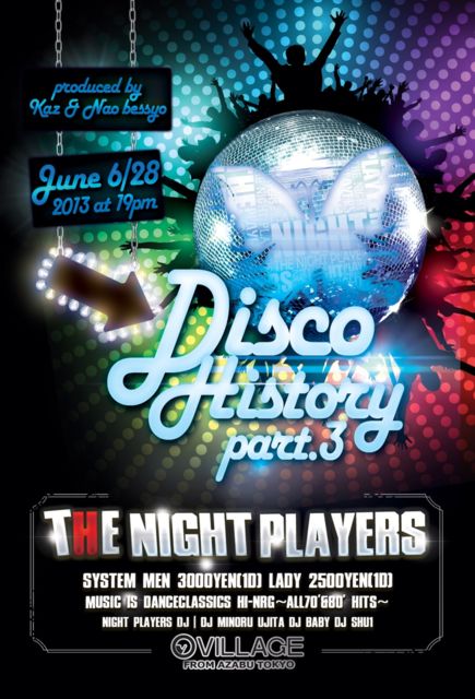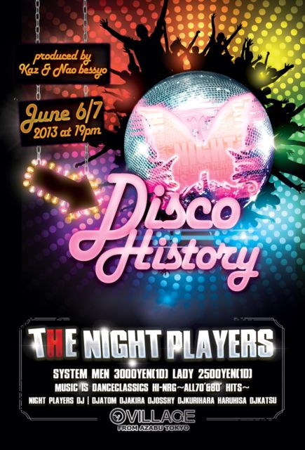 今月は『 THE NIGHT PLAYERS 』DISCO HISTORY Part2を 6/14(金)、Part3を6/28(金)をVILLAGE TOKYOにて開催します!