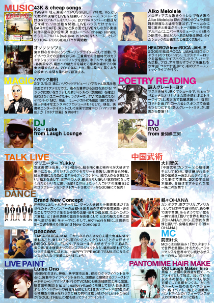 Open : 18:45 / Live Start : 1st. 19:45〜 2nd. 21:30〜