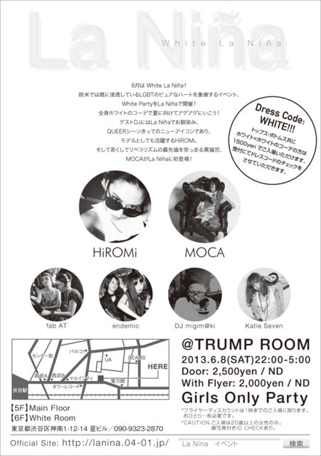 ゲストDJにはLa Niñaでお馴染み、QUEERシーンきってのニューアイコンであり、モデルとしても活躍するHiROMi、そして若くしてリベラリズムの最先端を突っ走る異端児、MOCAがLa Niñaに初登場Dress Code