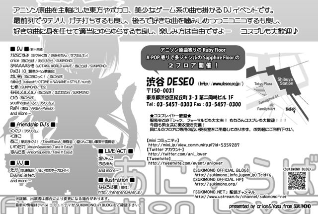 ★開催場所:【Eva club Ray】 京王線笹塚駅(新宿から1つ目)
