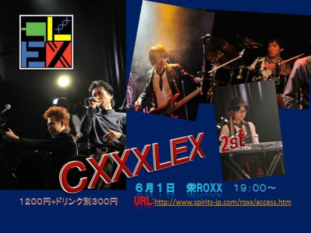 管理人様貴重なスペース大変失礼いたします。 来たる6月1日(土) 19:00〜 場所は 名古屋栄 ROXX (久屋大通りテレビ塔西)にて http://www.spirits-jp.com/roxx/access.htm COMPLEXコピーバンド CxxxLEX(シーレックス)のLIVEがあります、 LIVEイベントタイムテーブル、出演バンドは 16:30オープン 17:00〜 ブルーハーツ的なノリのいい曲+オリジナル 18:00〜 Superflyのコピバン 19:00〜 CxxxLEX ←ここです 20:00〜 東京事変