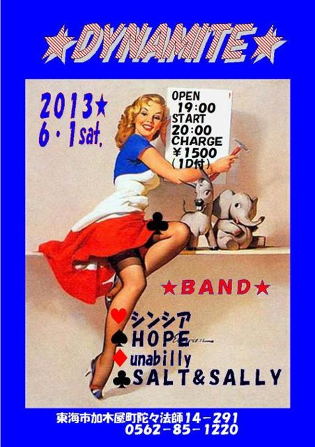 ★シンシア ★HOPE ★unabilly ★SALT&SALLY OPEN 19:00 START 20:00 CHARGE ¥1500(1D付)