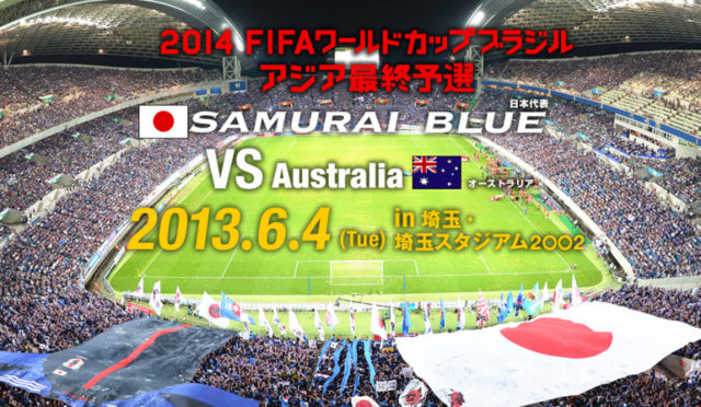 今週 6/4 (火) 【六本木】 日本代表戦 VS オーストラリア代表、応援ナイト!!! 4June2013 のお知らせです! 日本代表大丈夫かっ!!! この木曜日(5/30)、日本はブルガリアに0−2と完敗! しかしこの6/4、火曜日には、 日本代表 VS オーストラリア代表、アジア最終予選! 前回は渋谷でしたが、今回は六本木会場貸し切って、みんなで応援します! 下のリンクから、ご自由にサインアップください。 すでに現時点で122人サンアップしていますが、まだ100人はいけます! お友だちも呼んで来て、みんなで暑い夜にしましょう!