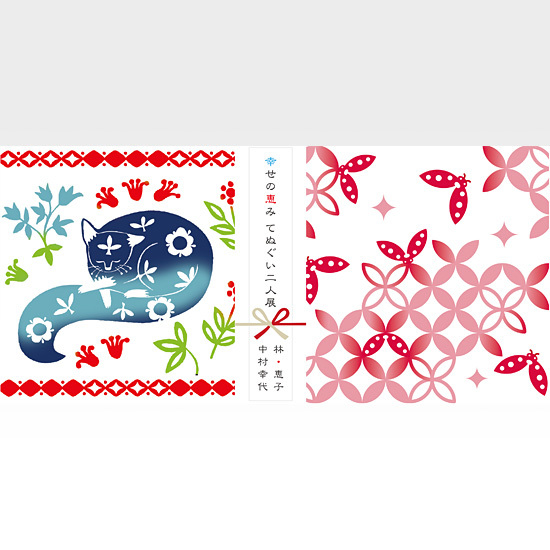 管理人さま てぬぐい展のお知らせをさせてください。 「幸せの恵み てぬぐい二人展2013 中村幸代 林・恵子」 てぬぐいという1枚の布の中に幸せの願いを込めてデザインしてきた 中村幸代と林・恵子の2回目の二人展です。 今回のテーマは「お祝い」結婚式や父の日のプレゼント用のてぬぐいや 小物の他、包んだり畳んだりお祝いとしてのてぬぐいの使い方を提案します。 日程:2013年6月11日(火)〜6月16日(日) 時間:12:00〜19:00(土日は17:00まで) 会場:シーガル・カードギャラリー&ショップ