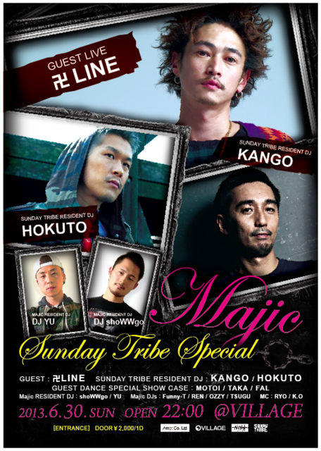 VILLAGEËè½µÆüÍËÆü¤ÎÂç¿Íµ¤¥×¥í¥°¥é¥à¡ÉSUNDAY TRIBE¡É¤È 2012ǯ¤ËÍÍ¡¹¤Ê¥Þ¥¸¥Ã¥¯¤ò»Å³Ý¤±¥ª¡¼¥Ç¥£¥¨¥ó¥¹¤Ë¾×·â¤òÍ¿¤¨¤¿¡ÉMajic¡É¤Î ¥³¥é¥Ü¥ì¡¼¥·¥ç¥ó¥Ñ¡¼¥Æ¥£¡¼¤¬6·î£³£°Æü¤Ë¿ë¤Ë³«ºÅ·èÄê¡£ Ëè²ó500¿Í°Ê¾å¤Îư°÷¤ò¸Ø¤ë¡ÉMajic¡É¤¬»Å³Ý¤±¤ë¤³¤Î°ìÈդΥᥤ¥ó¥¢¥¯¥È¤Ë¤Ï ¸½¾ì»ê¾å¼çµÁ¤ò´Ó¤¯¿Íµ¤¥ì¥²¥¨¥¢¡¼¥Æ¥£¥¹¥È¡ÉÒÄLINE¡É¤¬VILLAGE½éÅо졣 ¤½¤·¤ÆMOTI,TAKAFAL¤Î¥¹¥Ú¥·¥ã¥ë¥æ¥Ë¥Ã¥È¤¬Êü¤Ä¤³¤ÎÌë¸ÂÄê¤Î ¶Ãس¤Î¥À¥ó¥¹¥·¥ç¡¼¥±¡¼¥¹¤¬¹¹¤Ê¤ëËâË¡¤Î°ìÈդ˳§ÍͤòͶ¤¤¤Þ¤¹¡£ ¹ñÆâ¶þ»Ø¤Î¥¹¥¥ë¤ò¸Ø¤ëKANGO&HOKUTO¤È ¡ÈMajic¡É¤Î¼ÂÎÏÇÉRESIDENT DJ