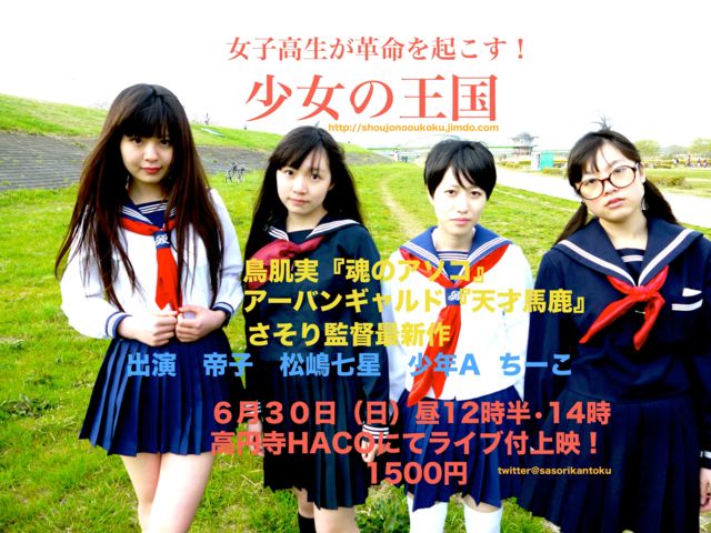 ¼ºÎ餤¤¿¤·¤Þ¤¹¡£½Ð±é¼Ô¤¬Á´°÷¸½Ìò½÷»Ò¹âÀ¸¤Î²µ½÷±Ç²è¡Ø¾¯½÷¤Î²¦¹ñ¡Ù¤¬£¶·î30Æü¡ÊÆü¡Ë12»þ30ʬ•14»þ¹â±ß»ûHACO¤Ë¤Æ¥é¥¤¥ÖÉÕ¾å±Ç¤Ç¤¹¡£ÎÁ¶â1500±ß¡£¤ª»þ´Ö¤´¤¶¤¤¤Þ¤·¤¿¤é¤ª±Û¤·²¼¤µ¤¤¤Þ¤»¡£¤è¤í¤·¤¯¤ª´ê¤¤¤¤¤¿¤·¤Þ¤¹¡£½Ð±é¤Ê¤Ê¤Ý¤ó¤Ì¡¢¾¯Ç¯A http://koenjihaco.com/ ¡¡HP¡¡http://shoujonooukoku.jimdo.com ͽ¹ðÊÔhttp://youtu.be/eDY_5B4LAv8