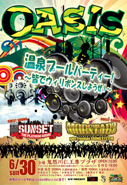 ¡ÚÌî³°¡Ü²¹Àô¡á²¹Àô¥×¡¼¥ë¥Ñ¡¼¥Æ¥£¡¼¡Û¡¡SUNSET/MOBSTARZ with Freedom SOUND SYSTEM¡¡½Ð±é µÙ»ß¤·¤Æ¤¤¤¿OASIS¤¬Ìî³°¤Ç£±Æü¤À¤±¤ÎÉü³è¡ª¡ª¡ª ¸»Àô¤«¤±Î®¤·¤Î²¹Àô¤Ë¿»¤«¤ê¤Ê¤¬¤é¡¢ SOUNDSYSTEM¤«¤éή¤ì¤ëREGGAE¤òʹ¤¯¤Î¤â¤è¤·¡ª ÎÙÀܤ·¤Æ¤¤¤ëÄà¤êËÙ¤Ç Äà¤ê¤ò¤·¤Æ±ö¾Æ¤¤Ë¤·¤Æ¿©¤Ù¤ë¤Î¤â¤è¤·¡ª ¿ôǯÁ°¤ËÂçή¹Ô¤·¤¿BIG TUNE¤Ç Á´°÷¤ÇÍÙ¤ë¤Î¤â¤è¤·¡ª ¿åÃå¤ò»ý¤Ã¤Æ¤¯¤ì¤Ð ÛØ¤Ç½ÐÍ褿²¹Àô¥×¡¼¥ë¤Ç±Ë¤®¤Ê¤¬¤é ¥â¥Ò¡¼¥È°û¤à¤Î¤â¤è¤·¡ª Â缫Á³¤ÎÃæ¤ÇREGGAE¡ªµ¤»ý¤Á¤¤¤¤¤Î¤Ï´Ö°ã¤¤¤Ê¤·¡ª¡ª¡ª 2013.06.30.sun ¡ÖOA