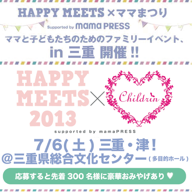 »°½Å¸©¤Ç½é³«ºÅ¡ªÍè·î¡¢7·î6Æü¡ÊÅÚ¡ËŽ¤»°½Å¸©Ž¤ÄŤΠ»°½Å¸©Áí¹çʸ²½¥»¥ó¥¿¡¼ ¡Ê¿ÌÜŪ¥Û¡¼¥ë¡Ë¤Ë¤Æ Ž¢HAPPY MEETS¡ß¥Þ¥Þ¤Þ¤Ä¤ê in MIEŽ£ ¤¬³«ºÅ¤µ¤ì¤Þ¤¹¡ª ¥Þ¥Þ¤¿¤Á¤Ë¤è¤ë¥Þ¥Þ¤È»Ò¤É¤â¤Ç³Ú¤·¤á¤ë¥Þ¥Þ¥Ö¡¼¥¹¤ä¡¢ ¹ë²Ú¾ÞÉʤ¬Åö¤¿¤ëÃêÁªÂç²ñ¡¢¤½¤·¤Æ´õ˾¼Ô¤ÏÁ´°÷»£±Æ¡ª »¨»ïI LOVE mama¤Î¿Æ»Ò¥¹¥Ê¥Ã¥×»£±Æ²ñ¤â¤¢¤ê¤Þ¤¹¡ª »°½Å¸©¤Î¥Þ¥Þ¤Ï½¸¹ç¤Ç¤¹¤Í¡ª¤»¤Ã¤«¤¯¤Îµ¡²ñ¤Ê¤Î¤Ç¡¢ ¥Þ¥Þͧ¤¿¤¯¤µ¤óºî¤Ã¤Æ¤Í¢ö ¡ü¡û¡ü¡û¡ü¡û¡ü¡û¡ü¡û¡ü¡û¡ü¡û¡ü¡û¡ü ¢­¢­¾Ü¤·¤¤¥¤¥Ù¥ó¥È¾ÜºÙ¤Ï¤³¤Á¤é¢­¢­ ¡ü¡û¡ü¡û¡ü¡û¡ü¡û¡ü¡û¡ü¡û¡ü¡û¡ü¡û¡ü ¡Ú¥¤¥Ù¥ó¥È