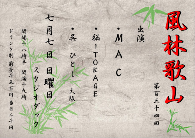 ¡ÚÆü»þ¡Û7·î7Æü¡ÊÆü¡ËPM16:00 OPEN