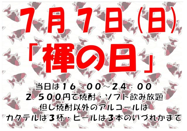 午後7:07までに入場のお客様、浴衣の女性はディスカウントを用意しています。