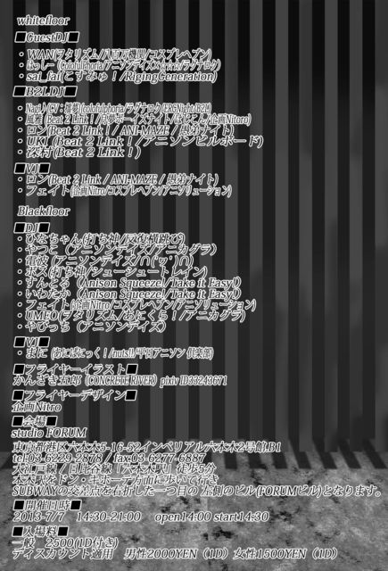 Beat 2 Link feat. ¥¢¥Ë¥½¥ó¥Ç¥¤¥º °ìÉ÷ÊѤï¤Ã¤¿Ê·°Ïµ¤¤ÈÏÃÂê¤ÎBeat 2 Link¡ª º£ÅÙ¤ÏBlack¥Õ¥í¥¢¤Ë³ØÀ¸¥µ¡¼¥¯¥ë·Ï¥¢¥Ë¥½¥ó¥¤¥Ù¥ó¥È¸µÁġ֥¢¥Ë¥½¥ó¥Ç¥¤¥º¡ß¡ú¡ú¡ú...¡×¤ò¾·½¸¡ª ¤¤¤Ä¤â¤Ë¤âÁý¤·¤Æ¥Õ¥í¥¢¤¬Æ°Êª±à²½¤¹¤ëͽ´¶¡¦¡¦¡¦ White¥Õ¥í¥¢¤Ë¤Ï ¥ò¥¿¥ê¥º¥à¤ÎDJ WAN ¥é¥°¥Ê¥í¥¯¤è¤êDJ ¤Ï¤Ã¤·¡¼ ¤³¤¹¤ß¤å¤è¤ê£×hiteÍ£°ì¤Î¹È°ìÅÀDJ sai_fai ¤È¸ÄÀˤ«¤Ê¥á¥ó¥Ð¡¼¤Ç¤ªÁ÷¤ê¤·¤Þ¤¹¡ª ¥¢¥Ë¥½¥ó¥¯¥é¥Ö¥¤¥Ù¥ó¥È¤Ë¹Ô¤Ã¤¿¤³¤È¤Ê¤¤¡£ ¤É¤ó¤Ê¥¤¥Ù¥ó¥È¤Ë¹Ô¤±¤Ð¤¤¤¤¤Î¤«Ê¬¤«¤é¤Ê¤¤¡£ ¿§¡¹¤Ê¥¸¥ã¥ó¥ë¤òݤ¤¿¤¤¡£ ¤Á¤ç¤Ã¤È¥Þ¥¤¥Ê¡¼¤Ê