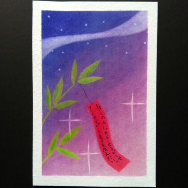 七夕の日にパステルを使って、笹と願い事を書いた短冊の絵を描きませんか? パステルは指を使って紙に直接描きますので、描くこと自体がヒーリングになります。 願い事をかなえるチカラをくれるカラーもアドバイスさせていただきます。 日時:2013年7月7日(日)10:30〜12:00 場所:SMBCコンシューマーファイナンス株式会社 渋谷お客様サービスプラザ 参加費:1,000円 ファシリテーター:Colour Magic 定員:4名 (先着順)