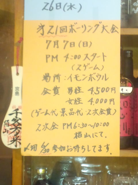 久し振りにボーリング大会です。二次会、景品あります。参加者連絡下さい。