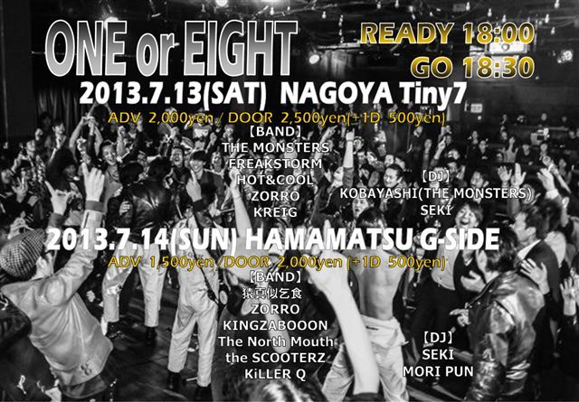 7·î£±£´Æü¡ÊÆü¡Ë¡÷ÀŲ¬ É;¾G-SIDE ¡ØONE or EIGHT¡Ù ¡ÁSUMMER TOUR OH!!OH!!¡Á(²¾) ¡ÚBAND¡Û ZORRO(Âçºå) KINGZABOOON(Åìµþ) ±î¿¿»÷¸ð¿©(¾®Åĸ¶) THE NORTH MOUTH(ÄÅ) THE SCOOTERZ KiLLER Q ¡ÚDJ¡Û SEKI ¥â¥êPUN