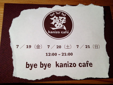 OPENして5年と7ヶ月の『天然雑貨屋ヒノデカニ商店』sanのカフェコーナー『蟹三カフェ』が閉じてしまう前に 蟹三での思い出を しっかり心に焼き付けておきたいし、 もう一度 蟹三の美味しいメニューを楽しんでおきたいし、 あの席で あのテーブルで あの椅子で の〜んびり? わいわい? 熱く?・・・ 行かなくちゃ 「ありがとう」を言いに 7月21日 21:00までに ね ココで いっぱいの出会いが有ったな。 「bye bye」は さみしいケド、 「さようなら」じゃ無いもんね。