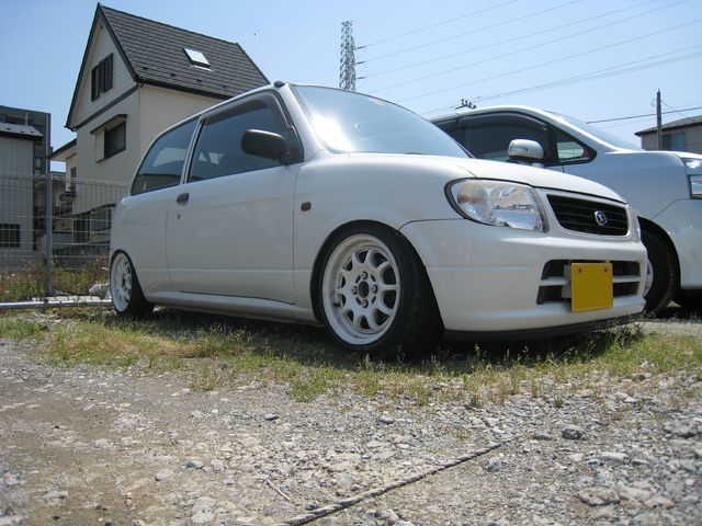 ・メーカー名:ダイハツ ・車名:ミラ ・年式:H13年(後期) ・グレード:TAスペシャル ・ミッション:マニュアル ・排気量:660cc ・色:白 ・リサイクル券の有無:有 ・ガソリン/ディーゼル:ガソリン ・走行距離:約95,000km(メーター交換あり表示は約12万km) ・車検の有無:H26年1月まで ・事故歴:なし ・キズや不具合の有無: 年式相応のヘコミや傷あります。 左リアフェンダー大きなヘコミあり(フェンダー爪折時に叩きすぎました。ぱっと見はわからないかも?) フロントフェンダー左右ともワイド化のためゆがみヘコミ