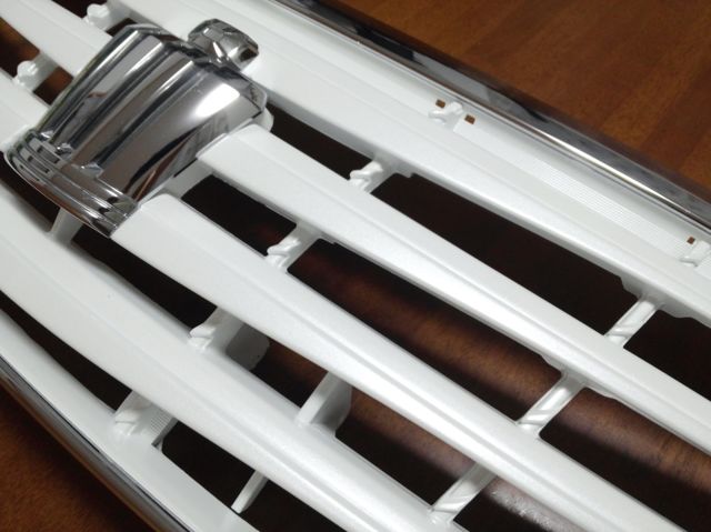200系クラウンロイヤル前期グリルの中部分を純正ホワイトパールに塗装しました。 メッキ部分が減ってスポーティな雰囲気になりました。 塗装は板金屋でしましたのでクオリティ高いです。 大きな傷等はありません。メッキ部一部ややサビ浮き有りです。 遠目では確認できません。 他人とは違った個性的なドレスアップをしたい方、いかがですか? 価格は1万円希望です。