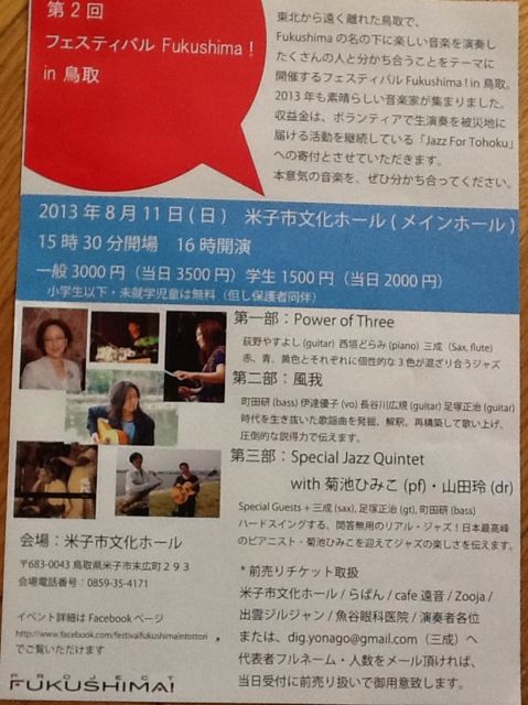 2013.08.05(月) 【場  所】鳥取 米子駅ストリート(予定) *時間、詳しい場所などは、随時twitterなどでお知らせします!