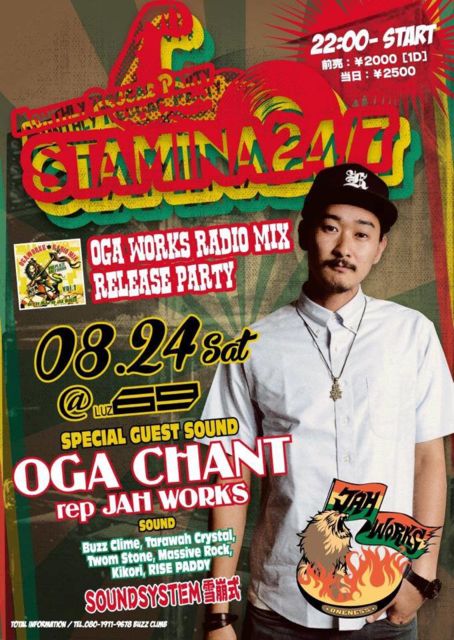 毎月第四土曜のLUZ69はマンスリーレゲエ!!!! 今週土曜 真夏の8月のスタミナはアツいBIG GUESTを招致!!!!! ↓以下 オーガナイザー福山 aka BUZZ CRIMB の告知を読むべし!! 連日連夜のパーティー、ダンス。 出演者のみなさん、クラブ、遊びにきてくれているみなさんおつかれさまです!! この暑さでますます疲れていることだと思います! いよいよ夏も後半戦!!泣いても笑ってもこの夏は1度きり!!とことんいきましょう! ついていきます! ついてきてください! さて、今週は第四土曜日!この夏だからこそスタミナ24/7!!!@Luz69 思
