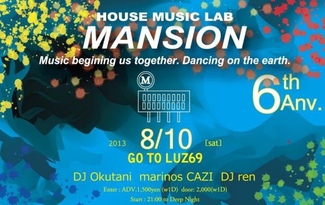 今週8/10の第二土曜、遂にDJ-ren主宰 HOUSE MUSIC LAB [MASION]が 6th Anniversary !! LUZ69の軌跡と共に歩んできたPARTYが6周年のお祭りです!! 今回は鳥取ねこカフェ Cat cafe Kitty Blue代表の よーちゃん aka DJ-OKUTANI も参戦決定!!! 皆さんお祝いしに来て下さい(^^)/ 以下↓ 主宰DJ-ren より------------- 8月10日(土)21:00〜は鳥取4つ打ちカルチャー"MANSION" DJ Okutani、marinos、Cazi、そして私renがお送りします!! 周年ということで、また新たな年に突入していきます。 皆様、是非遊びにお越しくださいませね♪