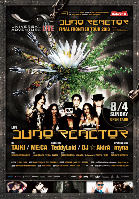 ¡¡ 8·î4Æü¡ÊÆüÍËÆü¡ËUNIVERSAL ADVENTURE LIVE¡§JUNO REACTOR - FINAL FRONTIER TOUR 2013 - @ Ì£±à¡¦¥æ¥Ë¥Ð¡¼¥¹ ********************************************************************************** ÆüÄø¡§2013ǯ 8·î4Æü¡Ê ÆüÍËÆü ¡Ë ¾ì½ê¡§¥æ¥Ë¥Ð¡¼¥¹¡Ê Âçºå¡¦Ì£±à / http://cavaret-universe.com/ ¡Ë »þ´Ö¡§³«¾ì¡¦³«±é 17:00 / Êıé 23:00 ÎÁ¶â¡§ÅöÆü 5,000±ß / Á°Çä¤ê¥Á¥±¥Ã¥È 4,000±ß¡Ê¶¦¤ËÆþ¾ì»þ¤Ë£±¥É¥ê¥ó¥¯Âå500±ß¤¬É¬Í×¡Ë ¢£ Á°Çä¤ê¥Á¥±¥Ã¥ÈȯÇäÃæ ¢£ [ ¥í¡¼¥½¥ó¥Á¥±¥Ã¥È ] L : 54046 [ e+ ] http://eplus.jp/