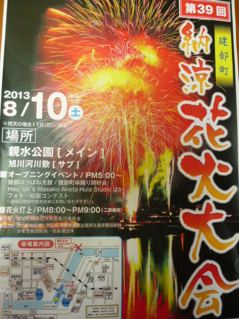 今週末ですがっ! よく行く近くの八幡温泉郷にて花火大会があります♪ 早めチェックインして温泉に入りゆき 田舎ならではの広い河にあがる花火をビール片手にいかがですか? もしも雨の場合は宿にて乾杯しましょう! 当日は混雑が予想されます。ご予約はお早めにお願いします。