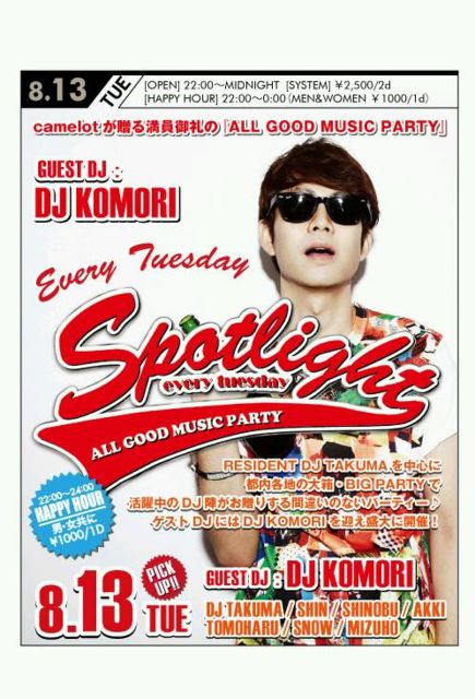 ¹ðÃμºÎ餷¤Þ¤¹¡£ ¢£¢¢¢£¢¢¢£¢¢¢£¢¢¢£¢¢¢£¢¢¢£¢¢¢£ camelot¡ù´Êñ¥²¥¹¥ÈÆþ¾ì¢¢ ¡Ø¥·¥ó¤Î¥²¥¹¥È¤Ç¥¹¥Ý¥Ã¥È¥é¥¤¥È¡Ù ¤È¼õÉդˤƸÀ¤Ã¤ÆÄº¤¯¤È²¿Ì¾ÍͤǤ⥲¥¹¥ÈÎÁ¶â¤ÇÆþ¾ì¤Ç¤¤Þ¤¹¡£ [ÃËÀ] 1000±ß/1Drink [½÷À] 1000±ß/2Drinks ¢£¢¢¢£¢¢¢£¢¢¢£¢¢¢£¢¢¢£¢¢¢£¢¢¢£ 8/13(²Ð) 22:00-5:00 -HipHop, R&B Party- ¡ØSPOTLIGHT special¡Ù ¡÷½Âë Camelot ²ÐÍËcamelot¤ÎÂç¿Íµ¤PARTY¡ØSpotlight¡Ù Ëè²ó400¿Íµ¬ÌϤÇÀ¹¤ê¾å¤¬¤Ã¤Æ¤¤¤ë¤³¤ÎParty¡ª¡ª¡ª¡ª¡ª º£²ó¤Ï²ÆµÙ¤ß¤Î¥¹¥Ú¥·¥ã¥ë¥Ð¡¼¥¸¥ç¥ó¤È¤¤¤¦¤³¤È¤Ç¡¢1000¿Íµ¬ÌϤνµ