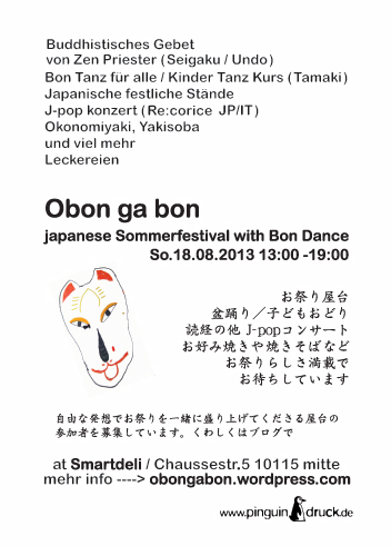 盆踊りを開催します! みなさまお誘い合わせの上お越しくださいね。 詳細はこちらです http://obongabon.wordpress.com/ ※ テキ屋さんをやってみたい方募集してます! ※ ※ アイデアをお持ちの方はお気軽にお問い合わせください! ※
