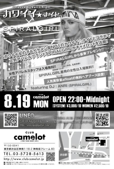 13/08/19(Mon) 22:00~ ¡Ú¥«¥ï¥¤¥¤¡ù¥Ê¥¤¥È¡ßSPIRALGIRL¡Û @CLUB camelot ¡Ý¡Ý¡Ý¡Ý¡Ý¡Ý¡Ý¡Ý¡Ý¡Ý ÆÃÊ̥ǥ£¥¹¥«¥¦¥ó¥È´õ˾¤ÎÊý¤Ï¡¢¥¨¥ó¥È¥é¥ó¥¹¤Ë¤Æ ¡Ö¥æ¥¦¥¿¤Î¥²¥¹¥È¤Ç¥¥ã¥á¥í¥Ã¥È¡×¤È¸À¤Ã¤ÆÄº¤±¤ì¤Ð¡¢ ¢¡Discount Guest M 2,000/1d W 1,500/1d ¤Ç¤Î¤´Æþ¾ì¤¬²Äǽ¤Ç¤¹¡£ ¡Ý¡Ý¡Ý¡Ý¡Ý¡Ý¡Ý¡Ý¡Ý¡Ý ¥«¥ï¥¤¥¤½÷¤Î»Ò¡õ¥¤¥±¥á¥óΨNo1 Party"¥«¥ï¥¤¥¤¡ù¥Ê¥¤¥È"¤È¿Íµ¤¥Ö¥é¥ó¥É"SPIRALGIRL"¤¬camelot¤òÆÈÀꡪ º£²ó¤â½÷À¤ËÆÃŵËþºÜ¡ª¡ª ¡¦SPIRALGIRL¤«¤é¡¢¹ë²Ú¥×¥ì¥¼¥ó¥È¡ª ¡¦½÷À¥¢¥Ñ¥ì¥ë¥¹¥¿¥Ã¥Õ¤ÏÆþ¾ì̵ÎÁ¡ª¡Ê̾»Éor¾ÚÌÀ