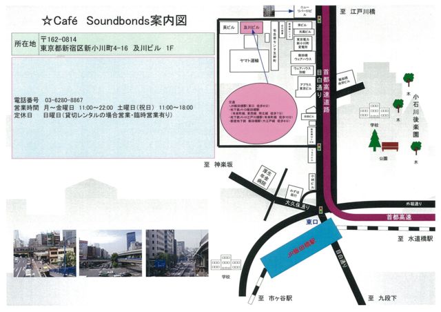 第7回サンドボンズ練習会の参加募集です。 liveのような固いイベントではありません。 マイクを使い、人前で練習の成果を試す企画です。 live前の度胸試しやリハーサルとして気軽に御利用ください。 主催 カフェ サウンドボンズ,発起人(桜葵 洋) 会場:カフェ サウンドボンズ 場所:東京都新宿区新小川町4-16 及川ビル 1F tel: 03-6280-8867 交通:飯田橋駅から531m ホームページ http://soundbonds.jimdo.com/ サウンドボンズのサイト https://www.facebook.com/soundbonds マスターのサイト