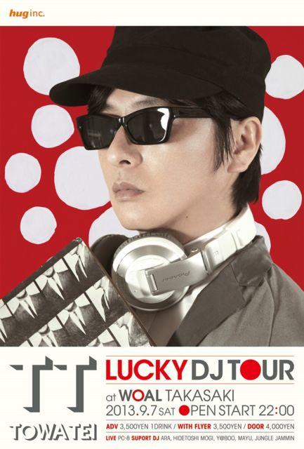 -DJ- TOWA TEI http://www.towatei.com/ -LIVE- PC-8 http://extrecordings.blogspot.jp/ -SUPORT DJ- ARA HIDETOSHI MOGI Y@BOO MAYU JUNGLE JAMMIN ¡ÉLUCKY DJ TOUR¡É¤Ç¥Æ¥¤¡¦¥È¥¦¥ï¤¬ºÆ¤ÓWOAL¤Ë·¯Î×!!! ¥¸¥ã¥±¥Ã¥È¥¢¡¼¥È¥ï¡¼¥¯¤ÏÀ¤³¦¤ÎÁð´Ö×½À¸¡£¤½¤Î¾¡¢ ¥·¥å¥¬¡¼µÈ±Ê¡¢ÄÇ̾ÎӸ顢¥Ð¥¯¥Ð¥¯¥É¥¥ó¡¢Predawn¡¢¼êÖº°ª¡¢ ¶Ì¾ë¥Æ¥£¥Ê¡¢ºÙÌîÀ²¿Ã¡¢ºäËÜζ°ì¡¢¹â¶¶¹¬¹¨¡¢°Ë²ì¹Ò¡¢ÉÍÌÂÀ¡¢ DORAN¤È¤¤¤Ã¤¿Ä¶¹ë²Ú¥¢¡¼¥Æ¥£¥¹¥È¤¬¥¢¥ë¥Ð¥à¤Ë»²²Ã¡£ Âî±Û¤·¤¿¥»¥ó¥¹¡¢DJ¥Æ¥¯¥Ë¥Ã¥¯¤òÁ´¿È¤ÇÂ䶤·¤Æ¤¯¤À¤µ¤¤¡ª ¤µ¤é