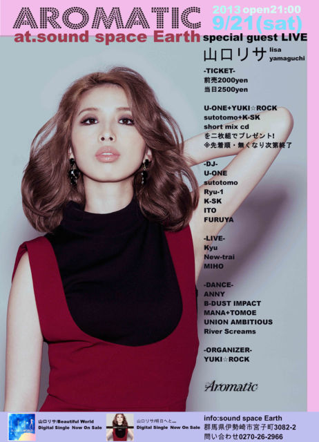 ¹ðÃμºÎ餤¤¿¤·¤Þ¤¹¡£ 2013 9/21(sat) R&B HIP HOP ¥¤¥Ù¥ó¥È aromatic @sound space EARTH ·²Çϸ©°ËÀªºê»ÔµÜ»ÒÄ®3082-2 Ì䤤¹ç¤ï¤» 0270-26-2966 OPEN 21:00¡Á Á°Çä¤ê2000yen ÅöÆü 2500yen web¸ÂÄêÇÛ¿®¤·¤Æ¤ª¤ê¤Þ¤¹³ä°ú²èÁü¤¬¤¢¤ê¤Þ¤¹¤Î¤ÇÀ§Èó¤´ÍøÍѤ¯¤À¤µ¤¤¡£ ¡¦²èÁü¤ò¤´Ä󼨤¤¤¿¤À¤¤Þ¤¹¤È¥Ç¥£¥¹¥«¥¦¥ó¥È¤µ¤»¤Æ¤¤¤¿¤À¤¤Þ¤¹¡£ ¡Ê£±¥°¥ë¡¼¥×£³Ì¾ÍͰʾå¤Ç£±Ì¾ÍÍ̵ÎÁ¤È¤Ê¤ê¤Þ¤¹¡£¡Ë DJ £Õ-ONE¡¦YUKI¡ùROCK SUTOTOMO¡¦K-SK¤Î¥·¥ç¡¼¥ÈMIX CD¤òÆóËçÁȤǥץ쥼¥ó¥È¡ª(ÀèÃå½ç¡¢Ìµ¤¯¤Ê¤ê¼¡Â轪λ) -SPECIAL GUEST L