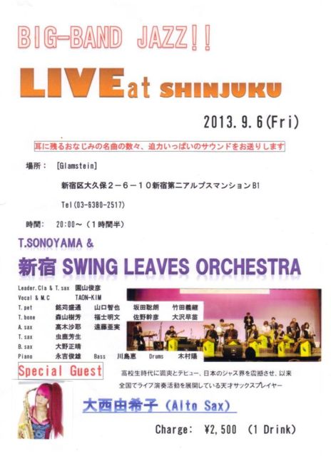 ■料金:¥1.500 (w/1 drink) or ¥2.000 (w/2 drinks)